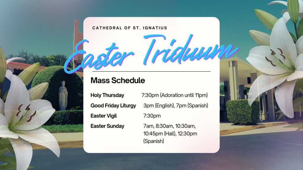 The Cathedral of Saint Ignatius Loyola serves as the central church of the Diocese of Palm Beach. The word ‘cathedral’ comes from the Latin ‘cathedra‘, meaning ‘seat’ – the seat of the Bishop.